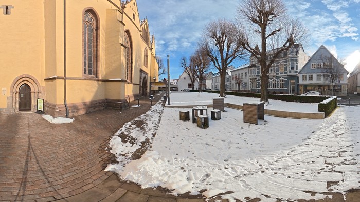 So schön sah der Kirchplatz St. Nicolai mit Schnee aus: