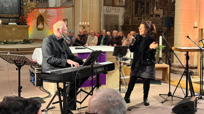 Was für eine super Stimmung bei "Around Christmas" mit Ulrike Wahren und Peter Stolle. In der ausverkauften St. Nicolai-Kirche gab es amerikanische Weihnachtslieder, deutsche Adventslieder zum Mitsingen und Geschichten, die zu Herzen gingen. Hinterher sagte jemand: "jeder ist mit einem Lächeln auf den Lippen nach Hause gegangen."