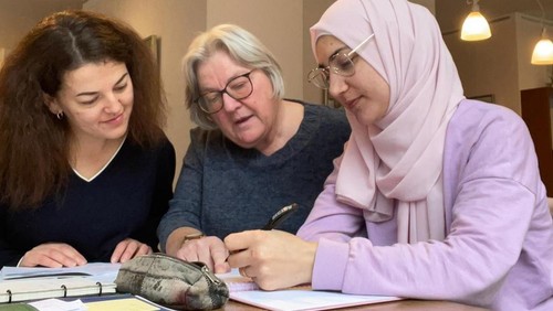 Die kleine Gruppe arbeitet mit einem klaren Ziel: die erste Deutschprüfung ist geschafft, nun soll es möglichst zügig weitergehen. Für eine Berufsausbildung braucht man ein gutes Sprachniveau. In der Lemgoer Flüchtlingshilfe gibt es viele Möglichkeiten, füreinander Zeit zu verbringen: bei der Vorbereitung auf Prüfungen oder wenn jemand noch ganz große Sorgen mit dem Lernen hat. Manche möchten einfach nur in freundlicher Gemeinschaft ein bisschen plaudern, manche brauchen eine ruhige Ecke, weil es zu Hause laut und zu eng ist. Herkunft oder Religion oder Hautfarbe spielen hier zum Glück keine Rolle. Aber dafür gibt es ganz viel zufriedenes Miteinander und Freude an der großen Vielfalt. Neun Kirchengemeinden und die Stadt Lemgo unterstützen die Flüchtlingshilfe finanziell.