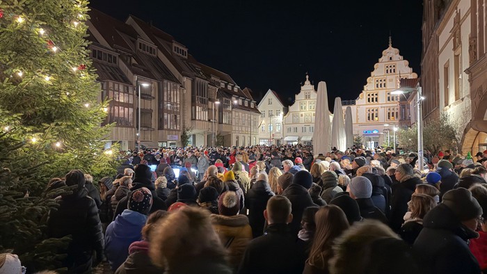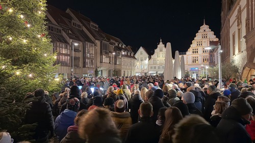 Wenn um 18.15 Uhr der Posaunenchor Lemgo auf den Lemgoer Marktplatz einlädt und das Wetter so perfekt mitspielt - dann lassen sich die Lemgoer nicht lange bitten. Zwischen Rathaus und Mittelstraße war kein Durchkommen mehr. Die vielen Besucher hörten "Jingle Bells" und sangen bis zum Schlusslied "O du fröhliche" kräftig mit. Das Liedblatt gab es digital, es wurde 851 x aufgerufen.