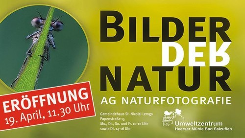 Die Arbeitsgemeinschaft Naturfotografie lädt herzlich zur Eröffnung seiner Fotoausstellung in Lemgo ein. Vor kurzem bekam die Fotogruppe den Umweltpreis des Bad Salzufler Umweltzentrums Heerser Mühle