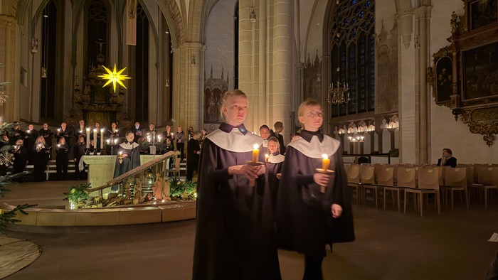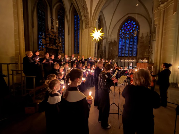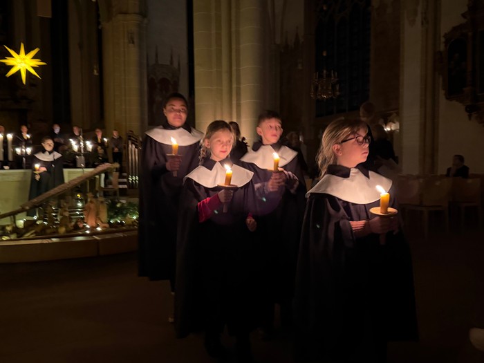 Astrid Röhrs hat mit dem Kinderchor alles eingeübt, Jakob Boudgoust hat die Kantorei geleitet und Jobst-Hermann Koch die Orgel gespielt - alles hat bestens geklappt, ein großes Erlebnis für alle Sinne beim "Quempas" am Weihnachtsmorgen. Danke an alle Mitwirkenden für den Dienst in früher Morgenstunde.