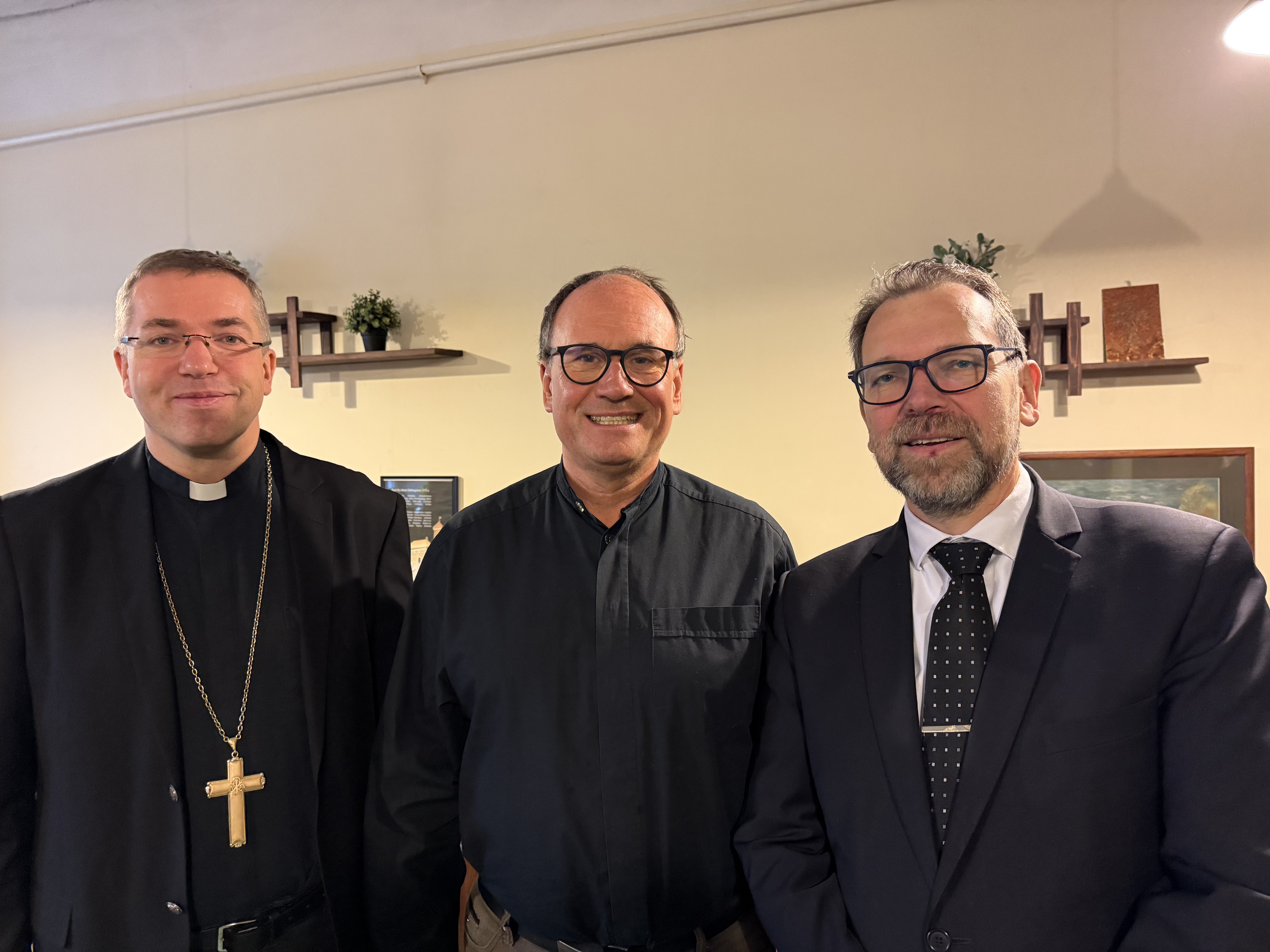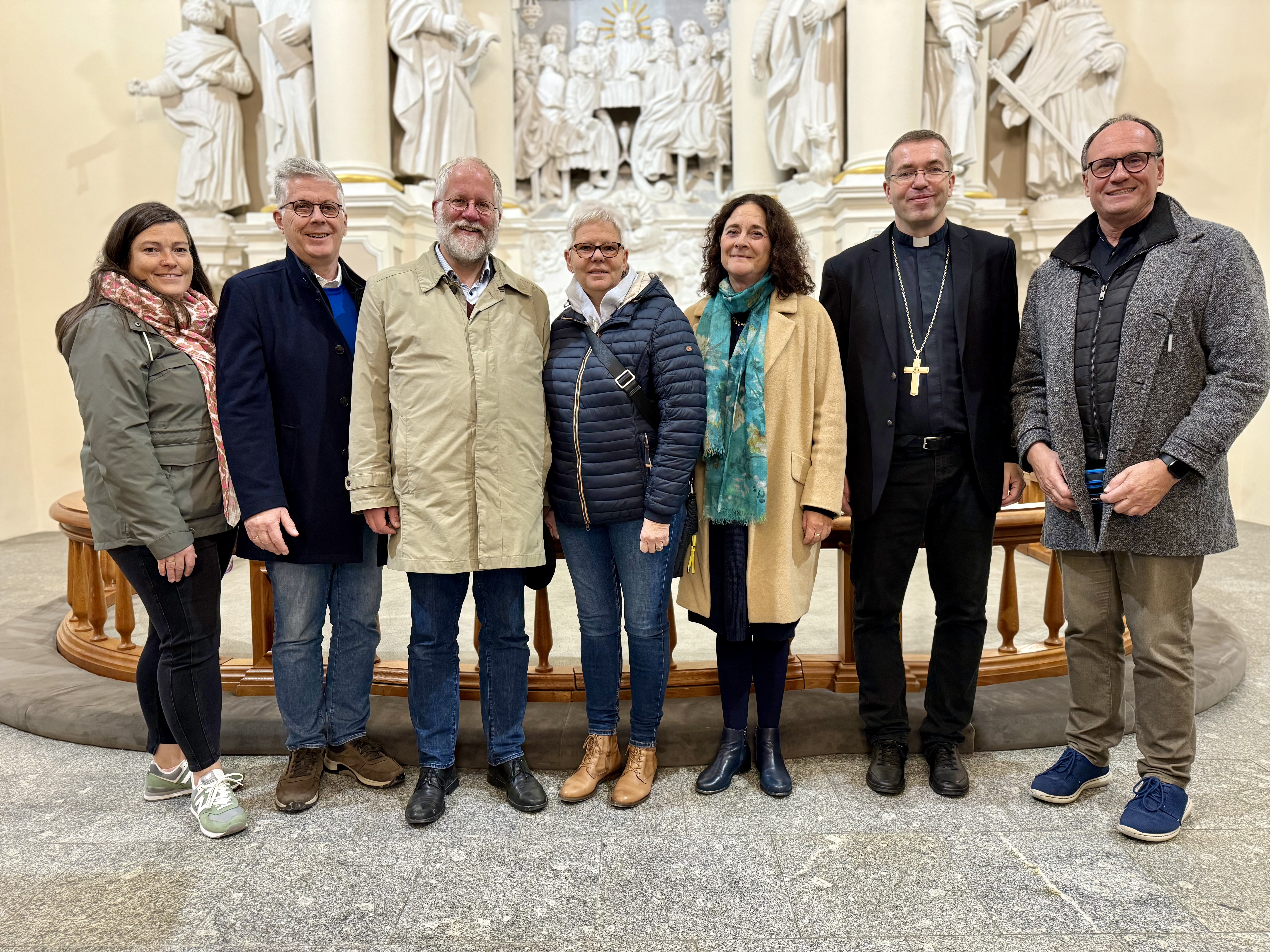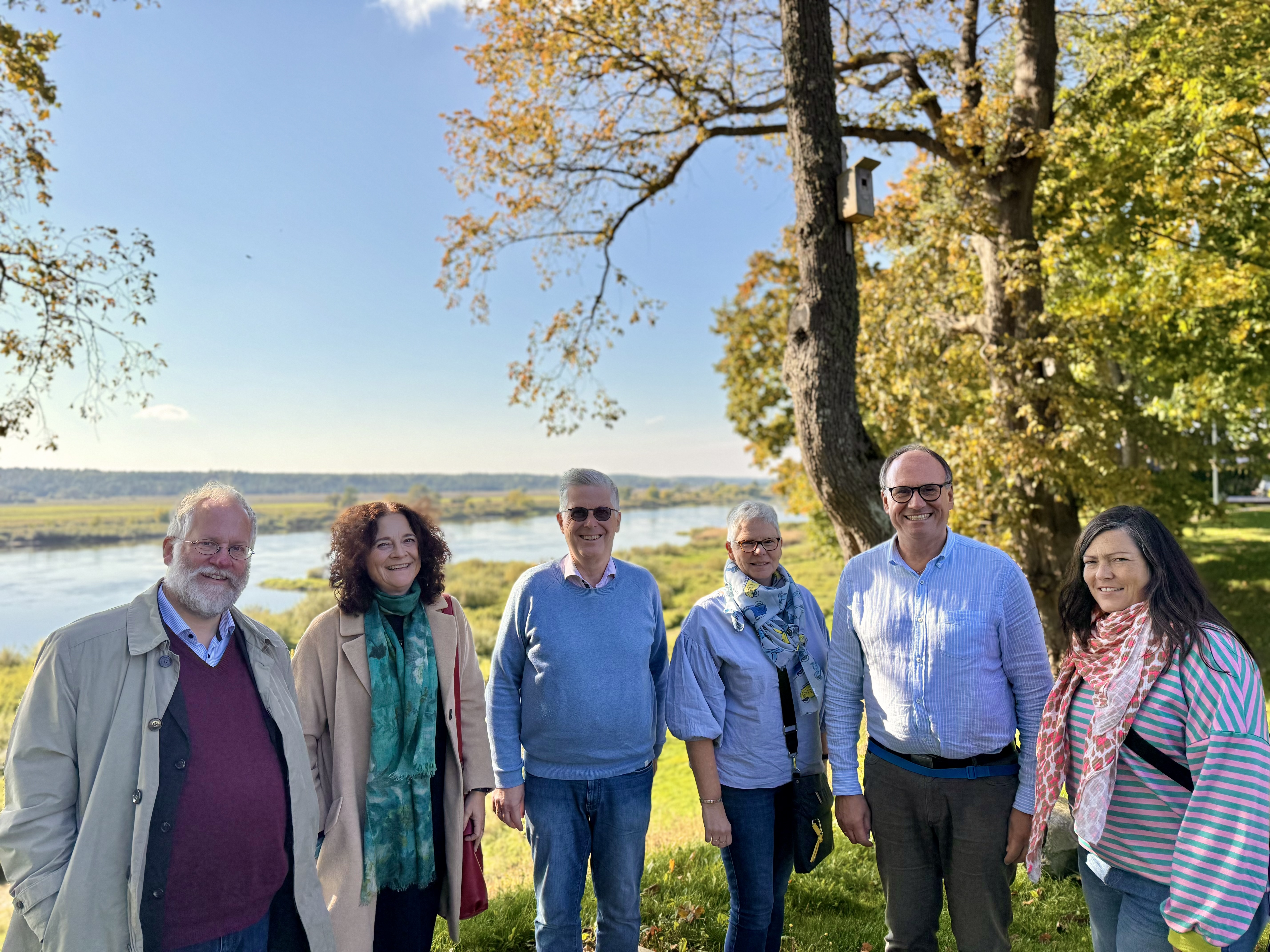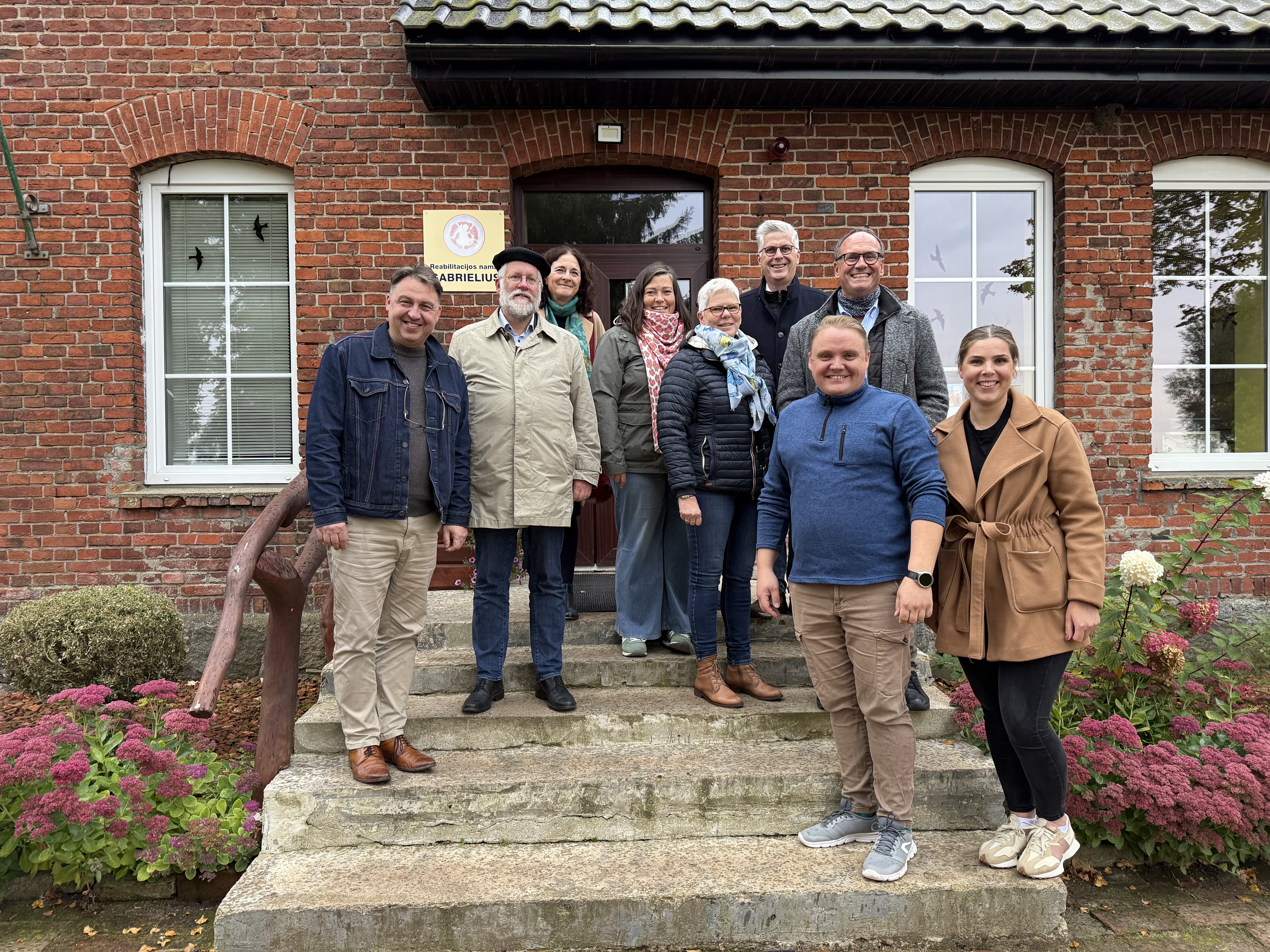 Das Gruppenbild oben entstand am 8.10.2025 in Jurbarkas. Von links Pfarrer Mindaugas Kairys, Pfarrein Steffie Langenau, Superintendent Dr. Andreas Lange, Silke Knöner, Pfarrer Frank Erichsmeier, Gerold Werner und Sabrina Landenberger – mit der Partnerschaftsurkunde in Händen.